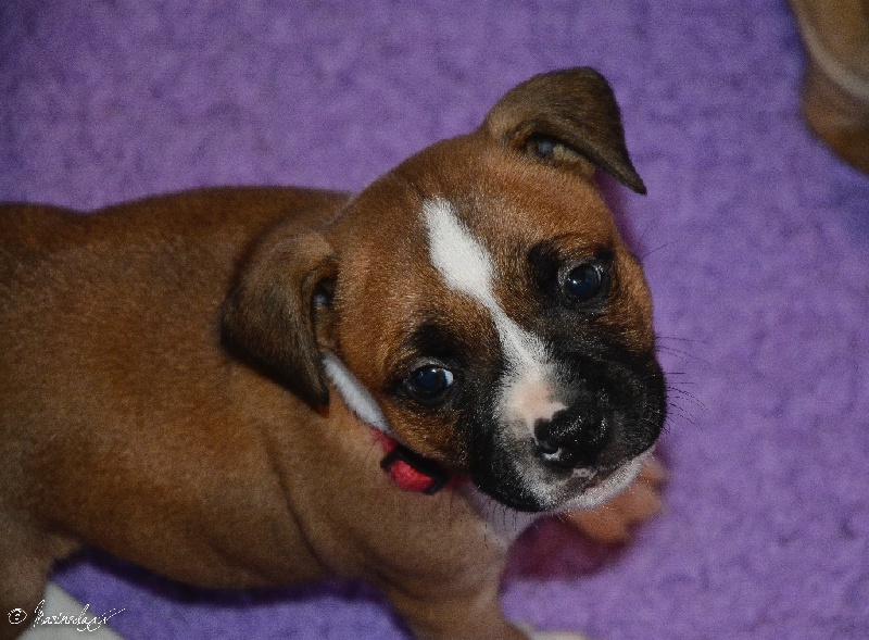 Rouge museau et liste blanche Bouts des pattes blanches dont antérieur gauche tout blanc photos à 5semaines